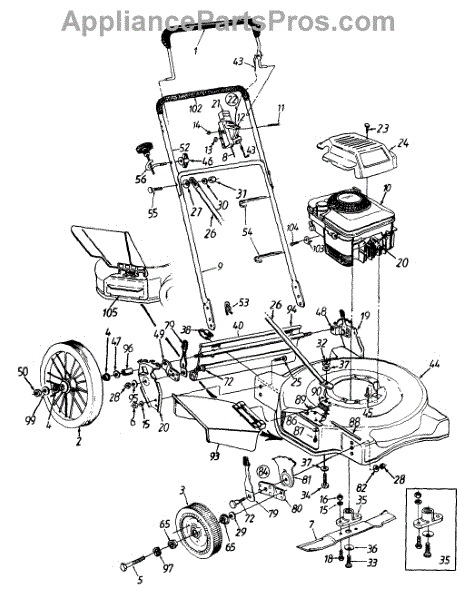 This is the front wheel assembly that is used by a large number of manufactures as the standard wheel for push mowers. This wheel is a tough, black rubber wheel fitted onto a sturdy white chassis. Since it is not a pneumatic wheel, there is no concern that it will roll over hidden debris and be damaged. Push wheels such as these often last the lifetime of a Lawn Mower. However, there are occasions when the housing of the mower is dropped and the wheel becomes warped or broken. It's also the case that, with constant use, the wheels can lose tread, making them harder to maneuver in tough mowing conditions. It has also been reported that the tires will wear and become smaller in circumference over time, meaning it will require more gasoline to mow the same amount of yard. The front wheels are easily replaced. After removing the plug cap and stabilizing the mower, simply use a socket wrench to remove the center bolt from the wheel. It's a good idea to use a dry lubricant like graphite on the axle before replacing it. This OEM guaranteed replacement part is compatible with Ryobi, Yard Machines, Troy-Bilt, Cub Cadet, Husky, Yard-Man, and MTD push mowers.