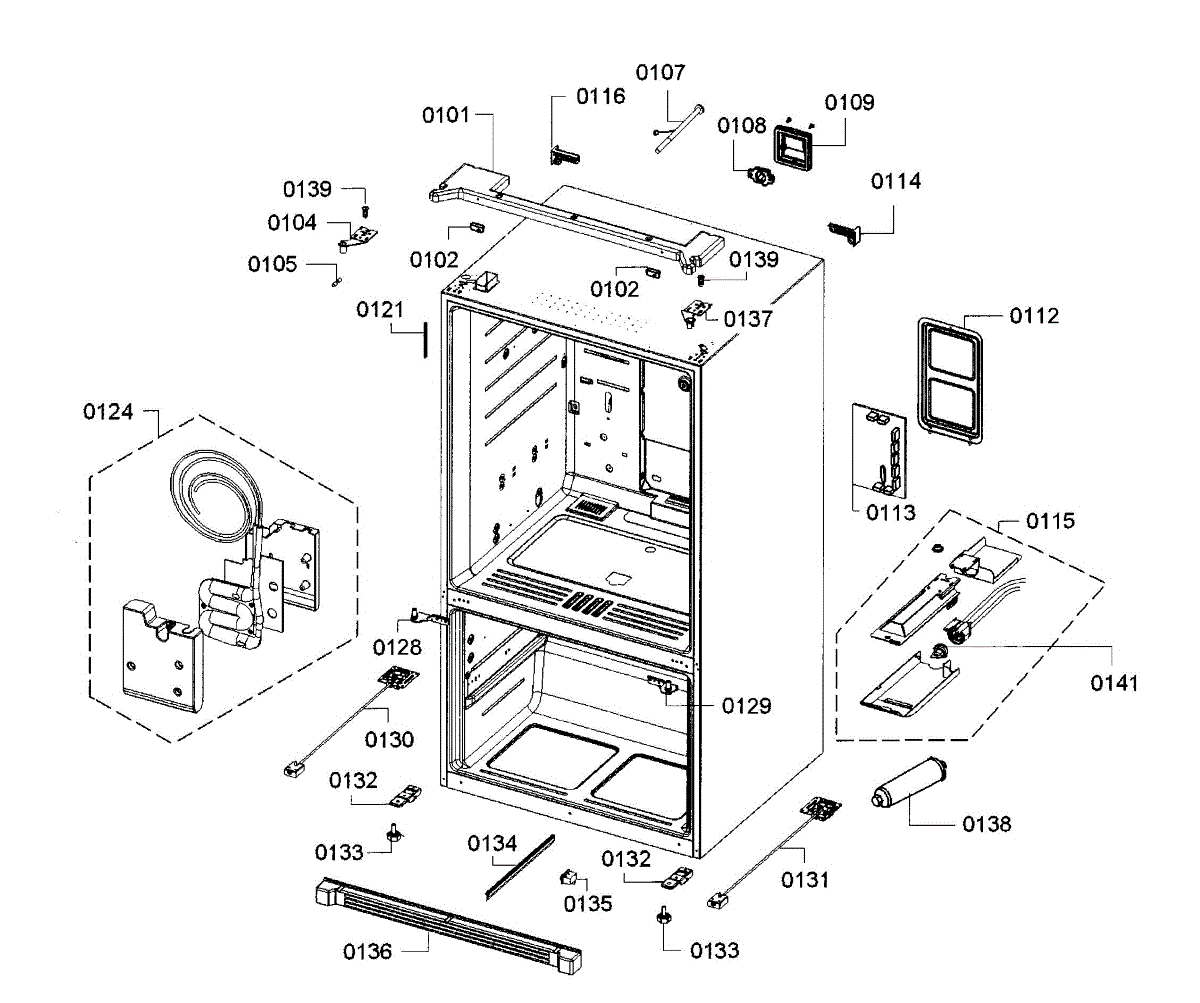 Replacement cover panel for bottom-mount refrigerators. Restores clean appearance when original is cracked, broken, or discolored from wear.