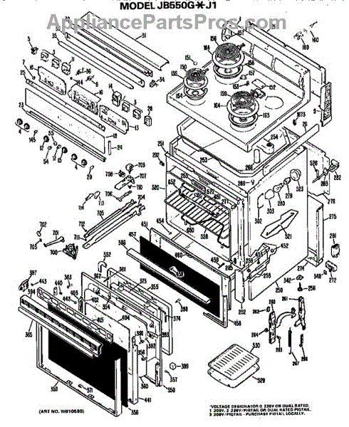 Parts for Ge JB550G*J1: Main Body / Cooktop / Controls Parts