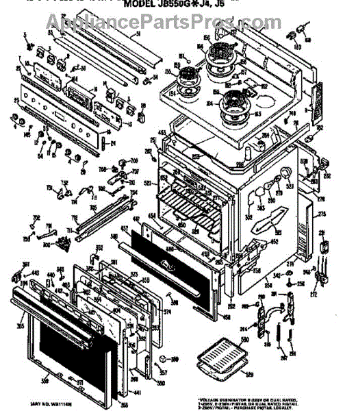 Parts for Ge JB550GJ4: Main Body / Cooktop / Controls Parts