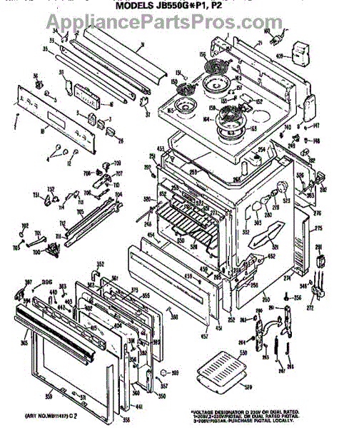 Parts for Ge JB550GP1: Main Body / Cooktop / Controls Parts