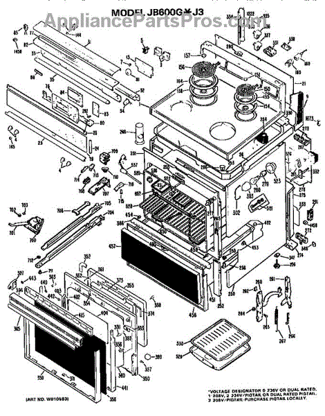 Parts for Ge JB600G*J2: Main Body / Cooktop / Controls Parts