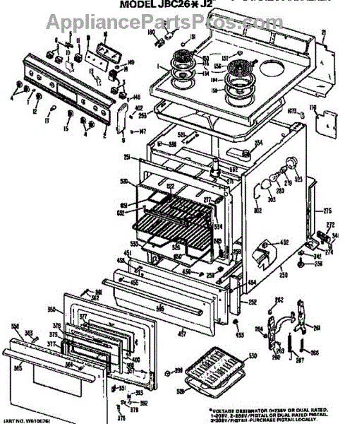 Parts for Ge JBC26*J2: Main Body / Cooktop / Controls Parts