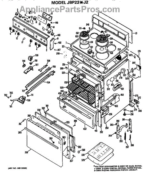 Parts for Ge JBP22*J2: Main Body / Cooktop / Controls Parts