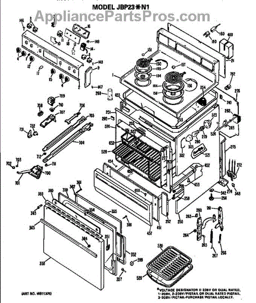 Parts for Ge JBP23N1: Main Body / Cooktop / Controls Parts