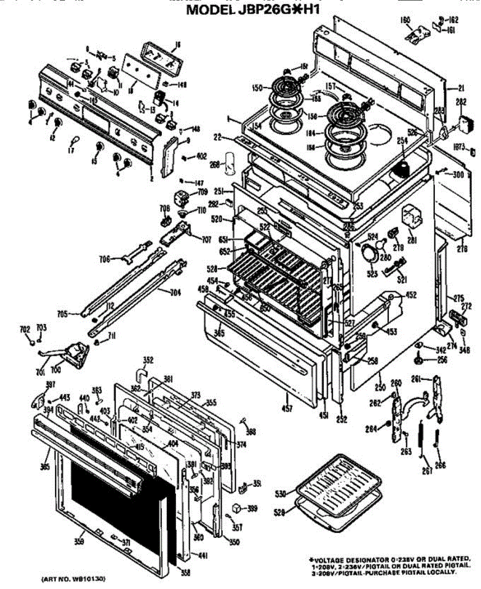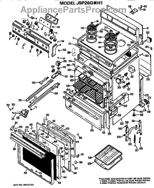 Parts for Ge JBP26G*H1: Main Body / Cooktop / Controls Parts