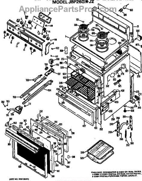 Parts for Ge JBP26G*J2: Main Body / Cooktop / Controls Parts