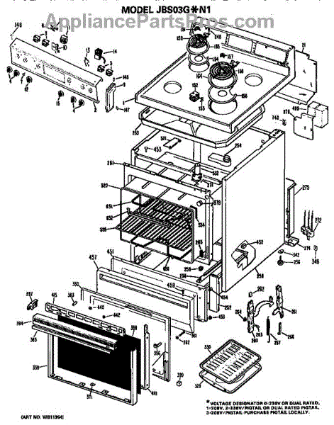 Parts for Ge JBS03GN1: Main Body / Cooktop / Controls Parts