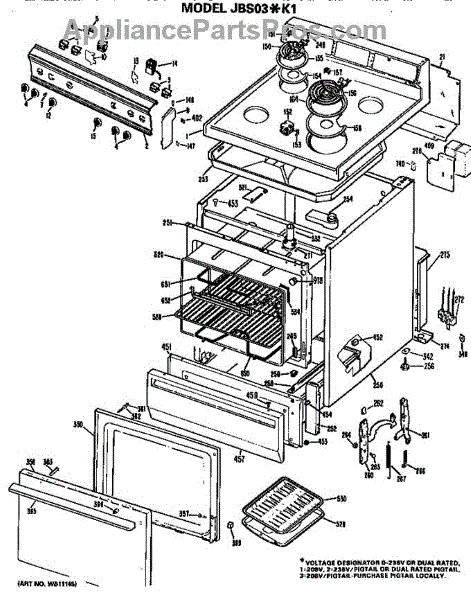 Parts for Ge JBS03K1: Main Body / Cooktop / Controls Parts