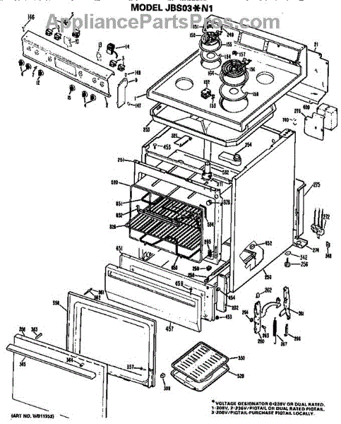 Parts for Ge JBS03N1: Main Body / Cooktop / Controls Parts