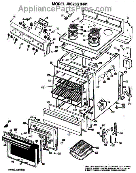 Parts for Ge JBS26GN1: Main Body / Cooktop / Controls Parts