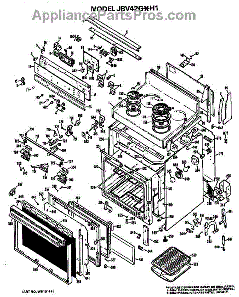 Parts for Ge JBV42G*H1: Main Body / Cooktop / Controls Parts