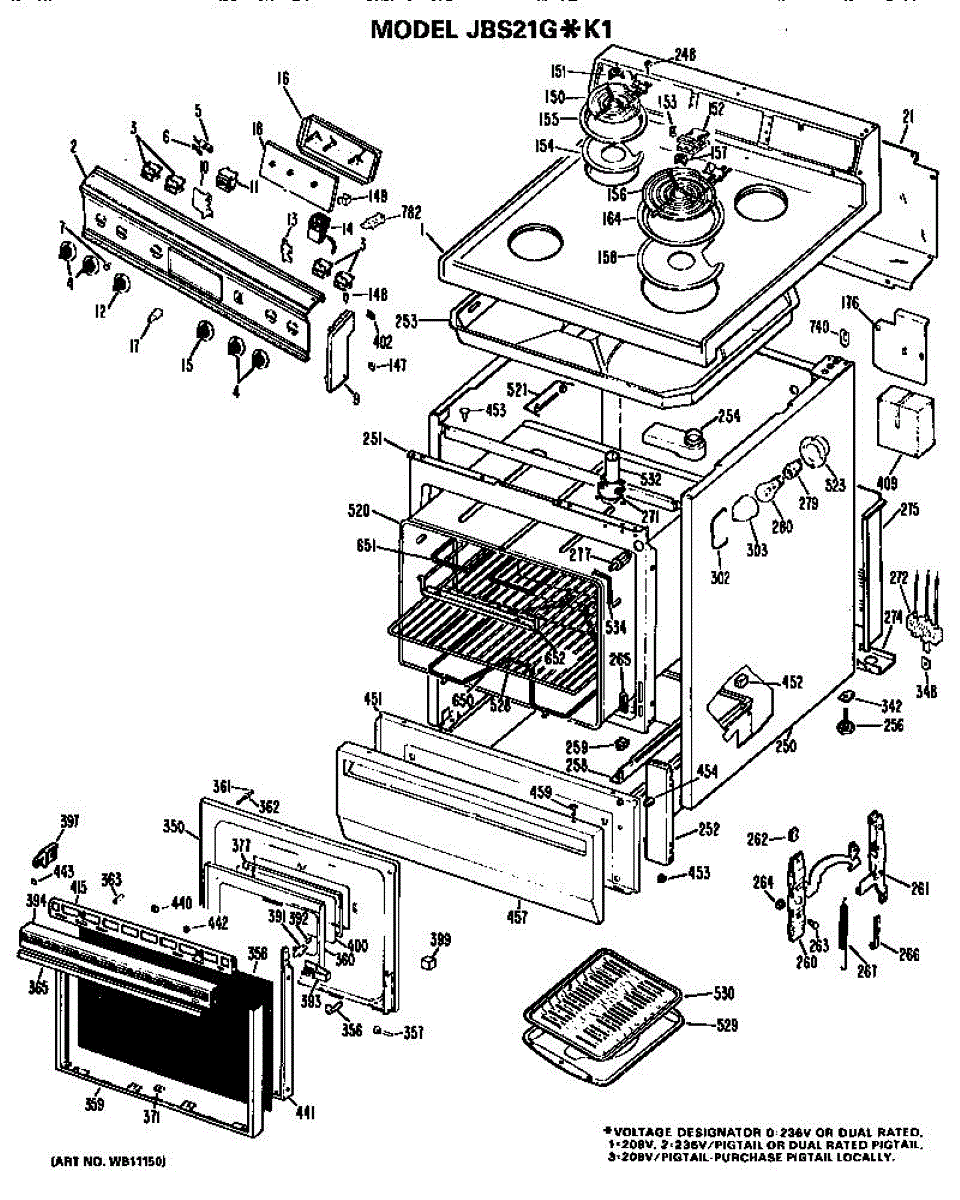 Parts for Ge JBS21G*K1: Main Body / Cooktop / Controls Parts