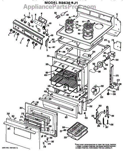 Parts for Hot Point RB636*J1: Main Body / Cooktop / Controls Parts
