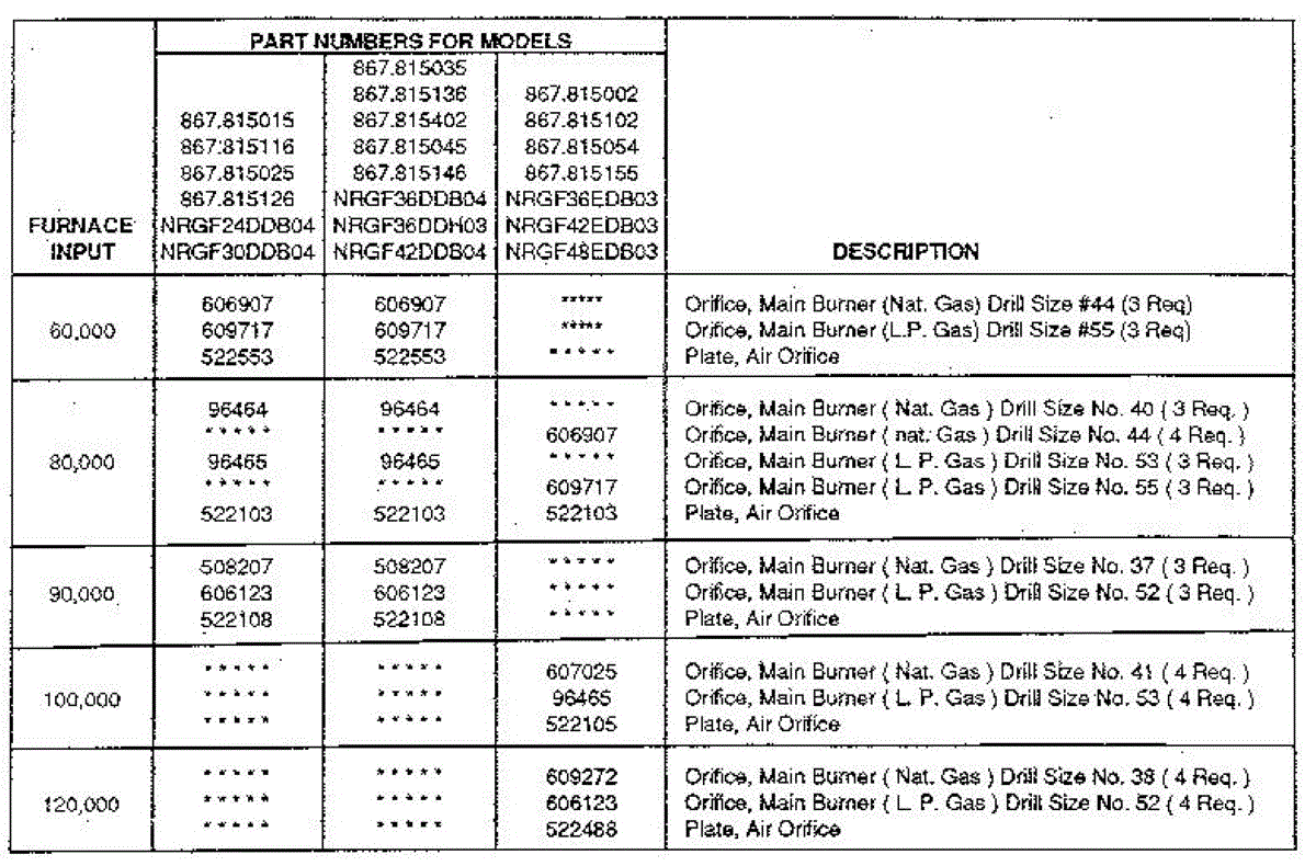 Parts for Icp NRGF42DKB04: Main Burner & Air Orifice Table Parts