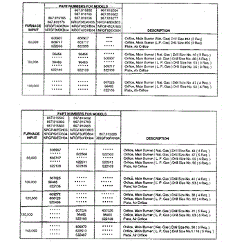 Parts for Icp NRGF60FDH04: Main Burner & Air Orifice Table Parts