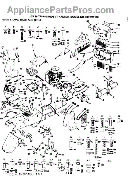 Parts for Craftsman 917257110: Main Frame, Dash And Grill Parts