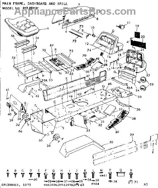 Parts for Craftsman 91725793: Main Frame, Dashboard & Grill Parts