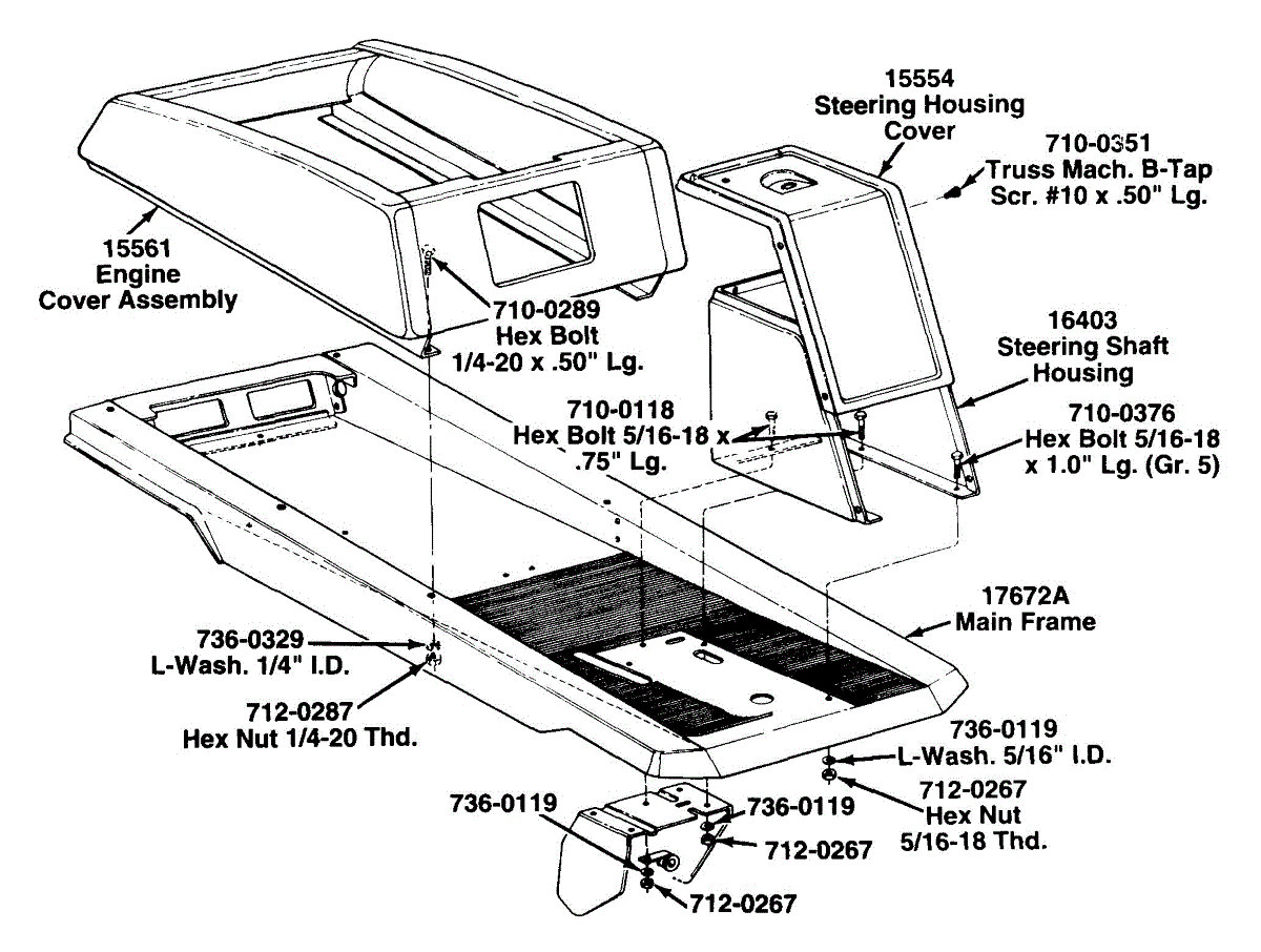 Hex cap screw for securing components on lawn mowers, tractors, and outdoor power equipment. Replace if stripped, rusted, or missing hardware.