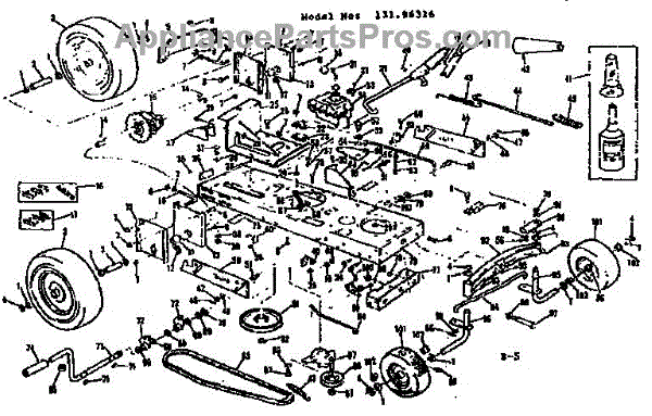 Parts for Craftsman 13196316: Main Frame And Wheel Assembly Parts