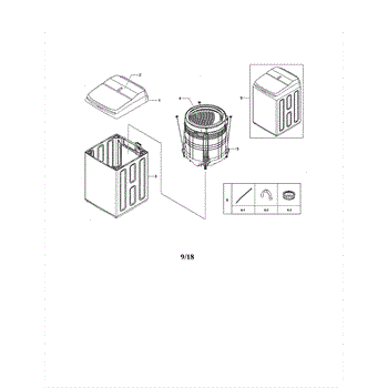 Frame case assembly for washers. Provides structural support for internal components. Replace if cracked, warped, or damaged to restore stability.