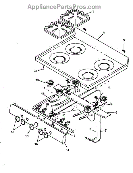 Parts for Caloric SNP26CB5/P1143183NL: Main Top Assembly Parts