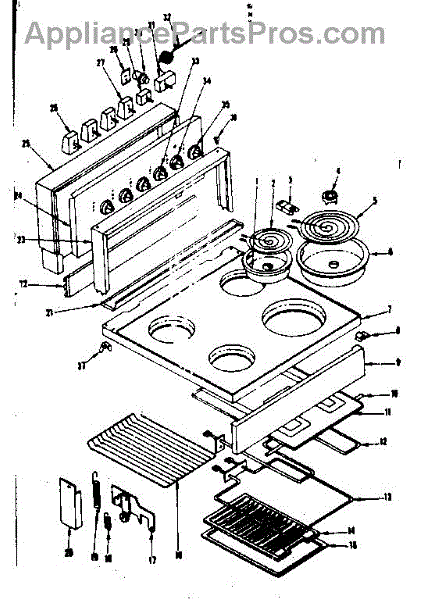 Parts for Kenmore 119.9067000 (1199067000, 119 9067000): Main Top And Backguard Section Parts