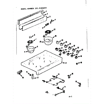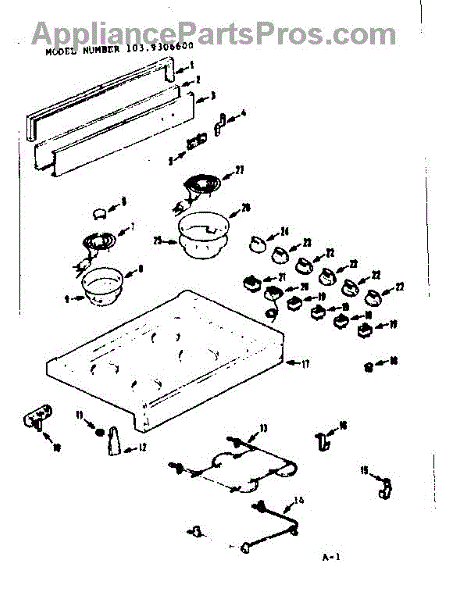 Parts for Kenmore 103.9306600 (1039306600, 103 9306600): Main Top And Burner Section Parts