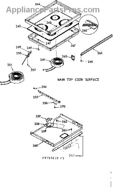 Parts for Kenmore 103.9757460 (1039757460, 103 9757460): Main Top Cook Surface Parts