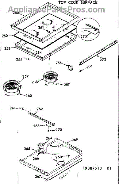 Parts for Kenmore 103.9887560 (1039887560, 103 9887560): Main Top Cook Surface Parts