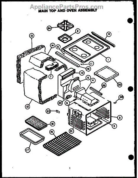 Parts for Caloric RHS353-OF: Main Top / Oven Assembly Parts