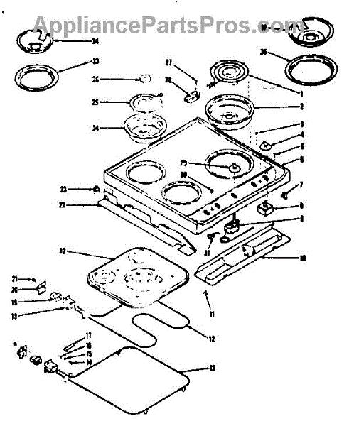Parts for Kenmore 119.9017321 (1199017321, 119 9017321): Main Top And Oven Units Parts