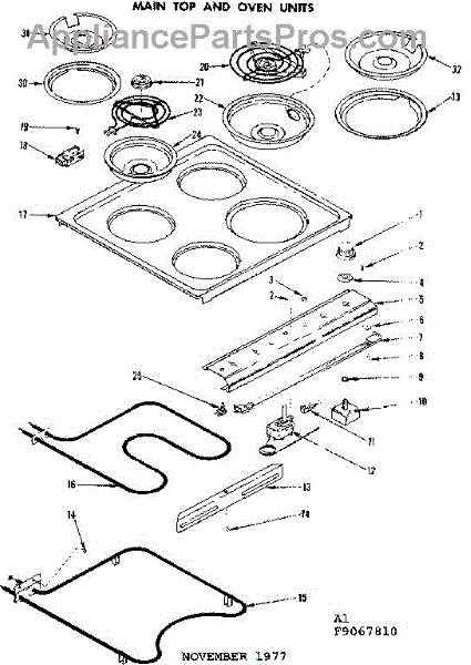 Parts for Kenmore 119.9067810 (1199067810, 119 9067810): Main Top And Oven Units Parts