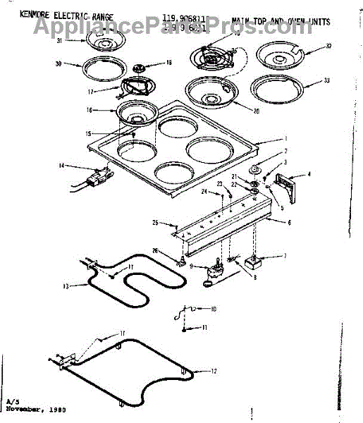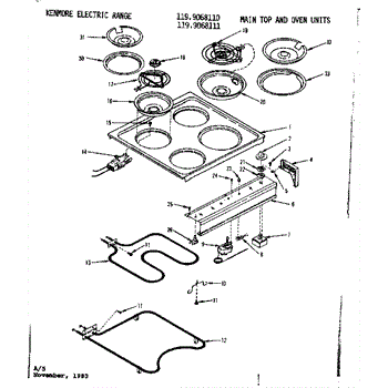 Parts for Kenmore 119.9068110 (1199068110, 119 9068110): Main Top And Oven Units Parts