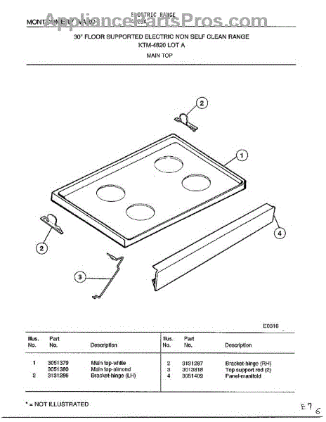 Parts for Frigidaire 4820A: Main Top Parts