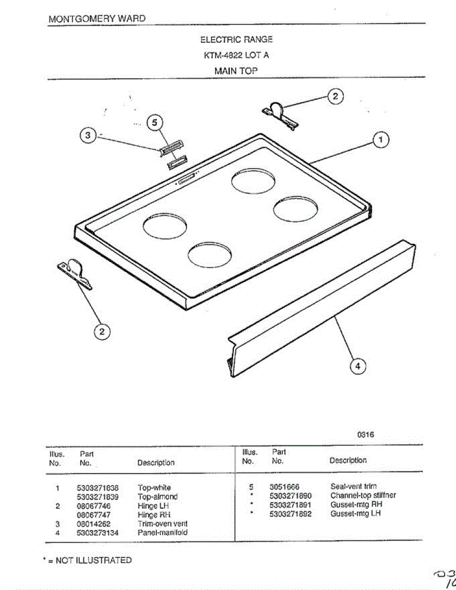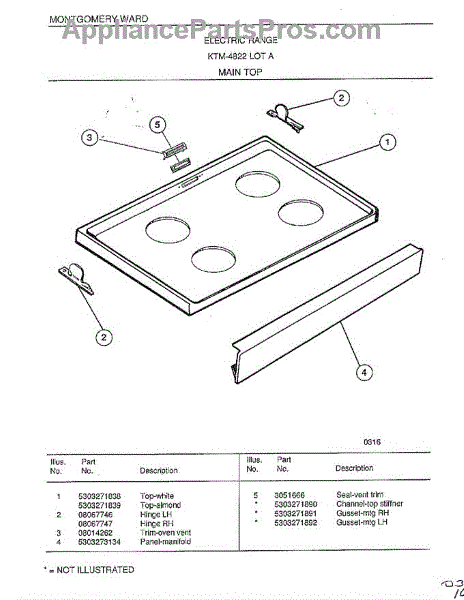 Parts for Frigidaire 4822A: Main Top Parts