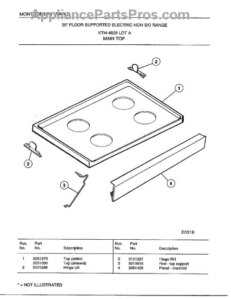Parts for Frigidaire 4829A: Main Top Parts
