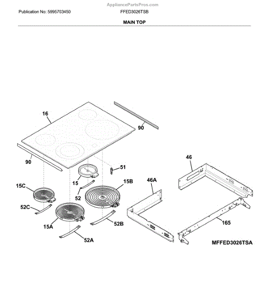 Parts for Frigidaire FFED3026TSB: Main Top Parts