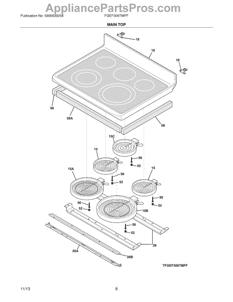 The Radiant Surface Element is an OEM part for Frigidaire ranges and cooktops. This part generates heat for cooking and boiling on the cooktop surface.