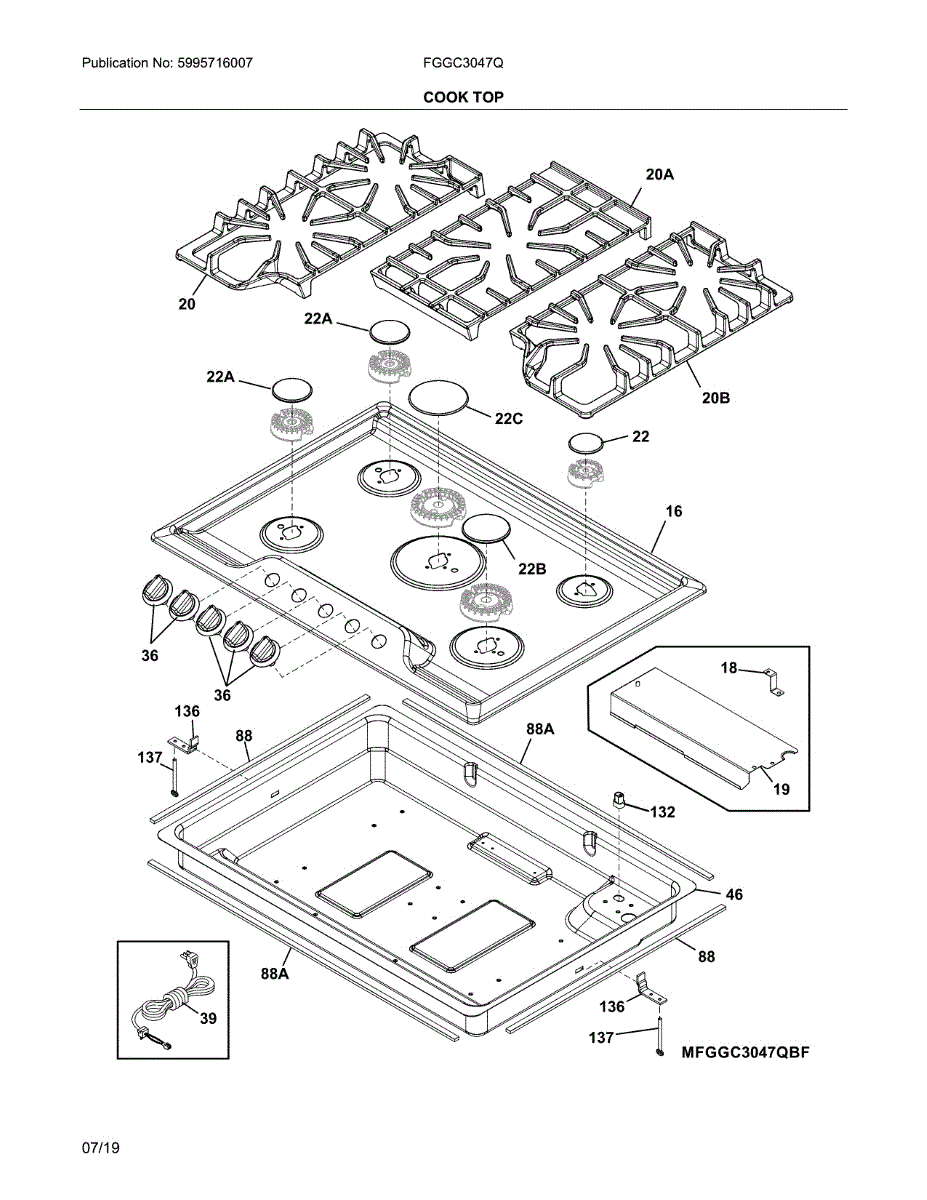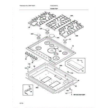 Replace your gas cooktop's main top surface panel if it's cracked, chipped, scratched, or stained. This essential structural component forms the primary cooking surface and burner mounting area.