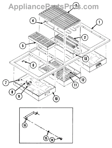 This rock plate support is used on many of the Jenn-air grill cartridge rock plates.
