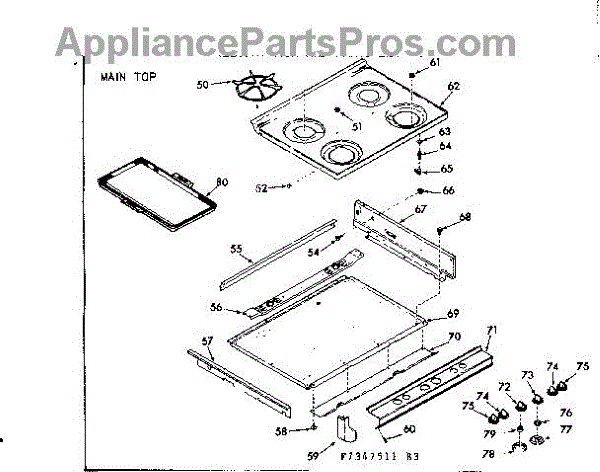 Parts for Kenmore 103.7347521 (1037347521, 103 7347521): Main Top Parts
