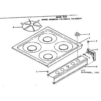 Parts for Kenmore 119.7028310 (1197028310, 119 7028310): Main Top Parts