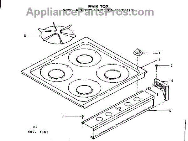 Parts for Kenmore 119.7108310 (1197108310, 119 7108310): Main Top Parts