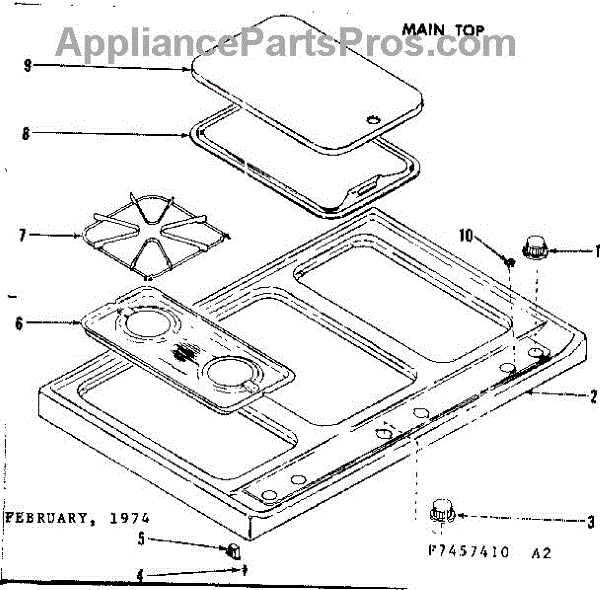 Parts for Kenmore 119.7457411 (1197457411, 119 7457411): Main Top Parts
