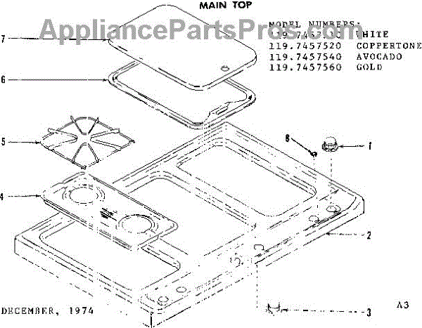 Parts for Kenmore 119.7457540 (1197457540, 119 7457540): Main Top Parts
