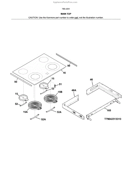 Parts for Kenmore 790.42512314 (79042512314, 790 42512314): Main Top Parts