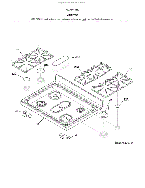 Parts for Kenmore 790.75443412 (79075443412, 790 75443412): Main Top Parts