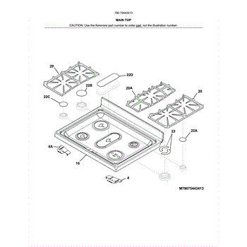 Parts for Kenmore 790.75443413 (79075443413, 790 75443413): Main Top Parts