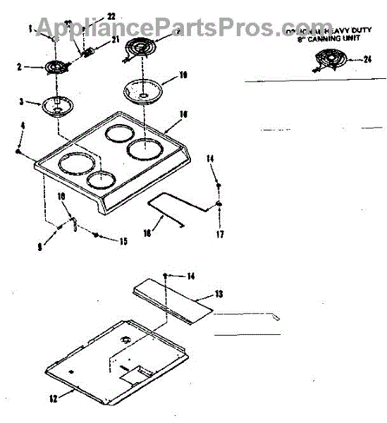 The 8" Surface Element is an OEM part for GE ranges. It is an 8-inch heating element that fits into the cooktop to provide heat for cooking.